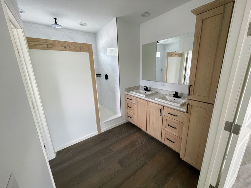 Rustic Elm Oak Hardwood Mission Flat Cabinets